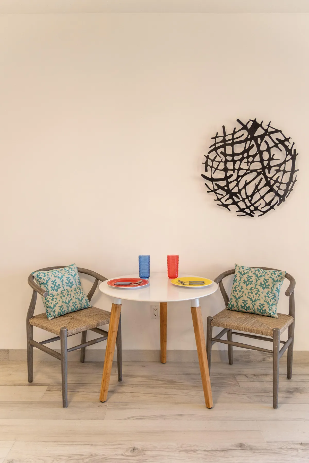 Full set of dishes, glassware, and utensils